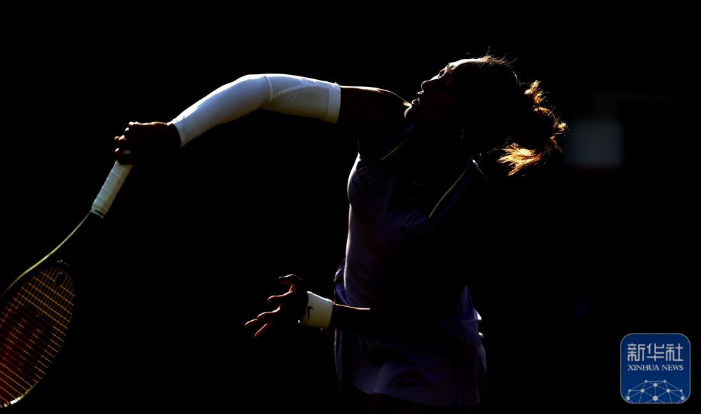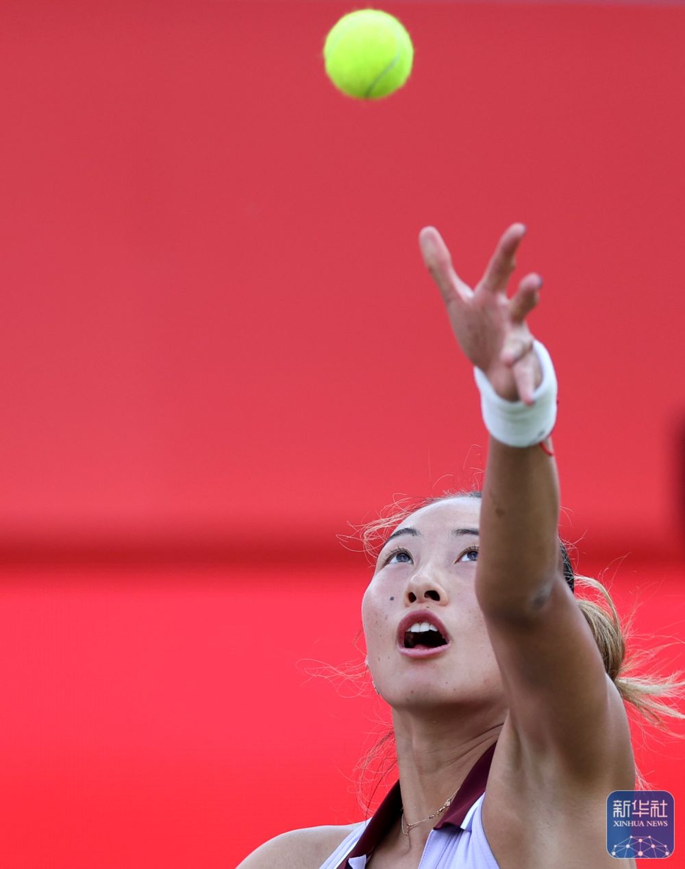 ↑郑钦文在比赛中发球。新华社记者 李颖 摄