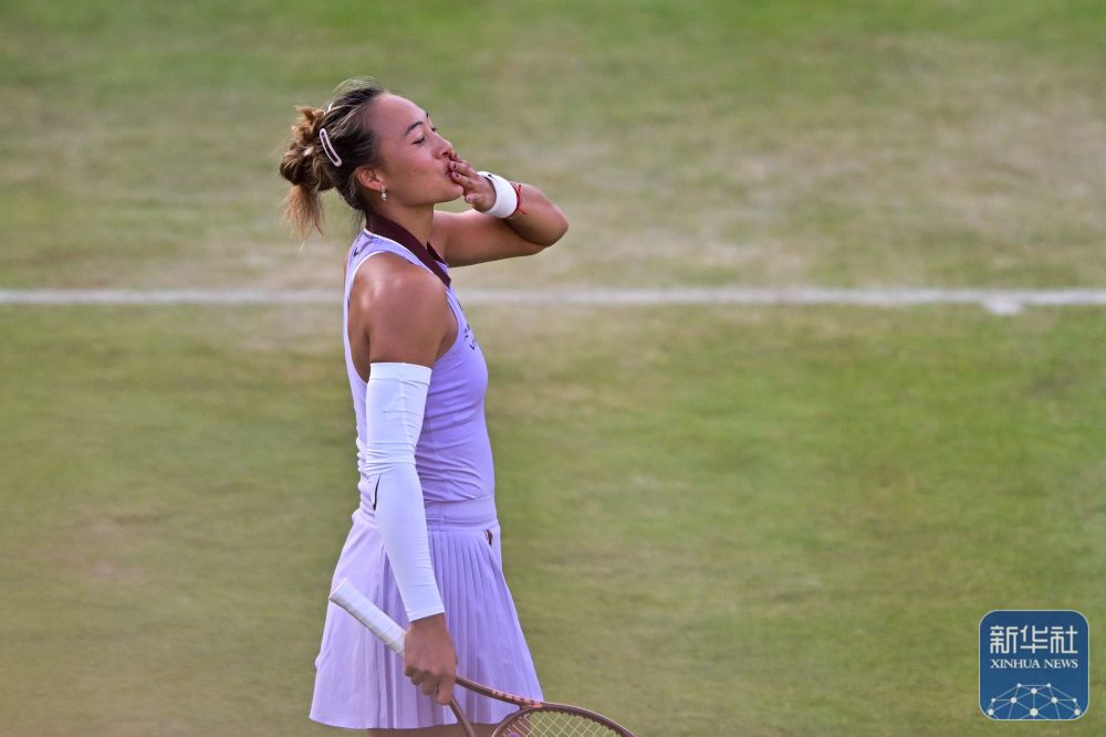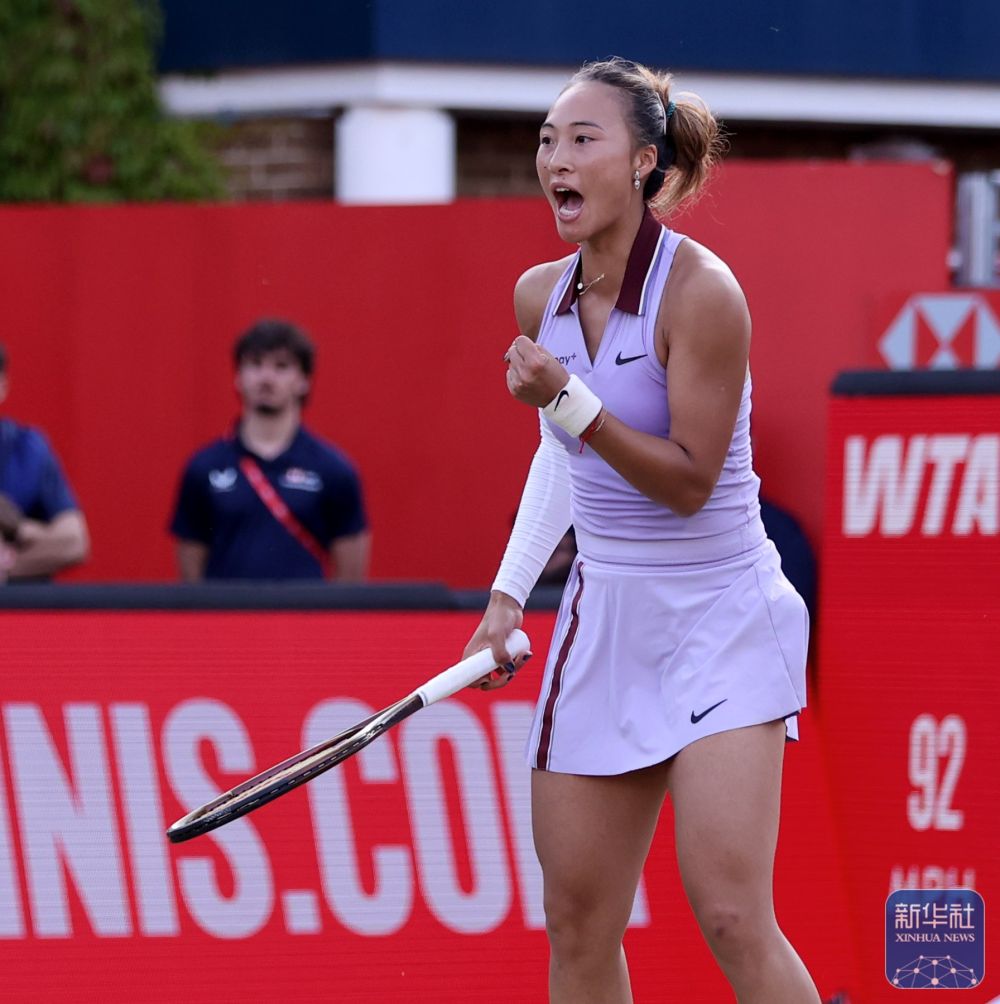 当地时间6月12日,在英国伦敦进行的女王杯网球赛女单第二轮比赛中,中国选手郑钦文2比1战胜美国选手凯斯乐,晋级八强。