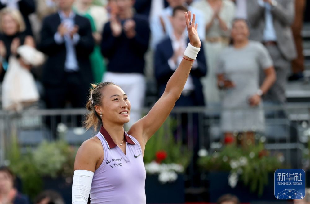 ↑ 郑钦文在比赛中。新华社记者 李颖 摄
