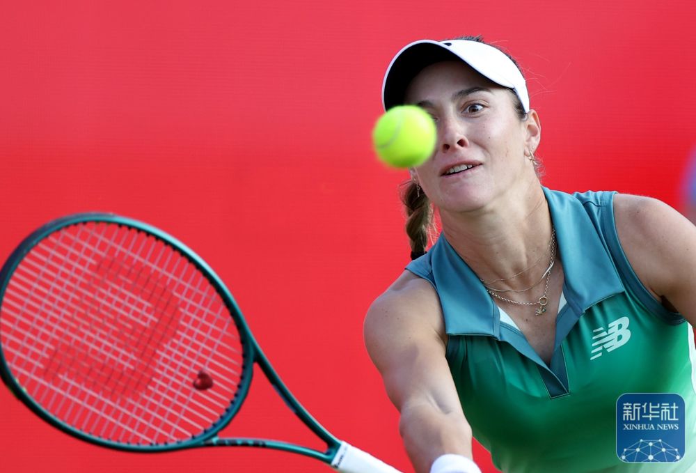 ↑郑钦文在比赛中回球。新华社发(刘颖摄)