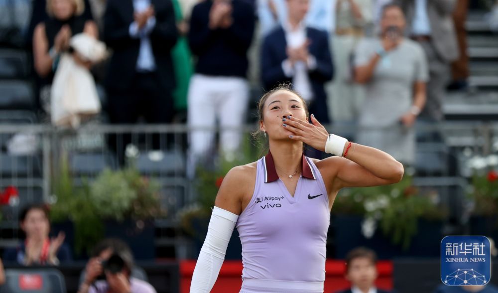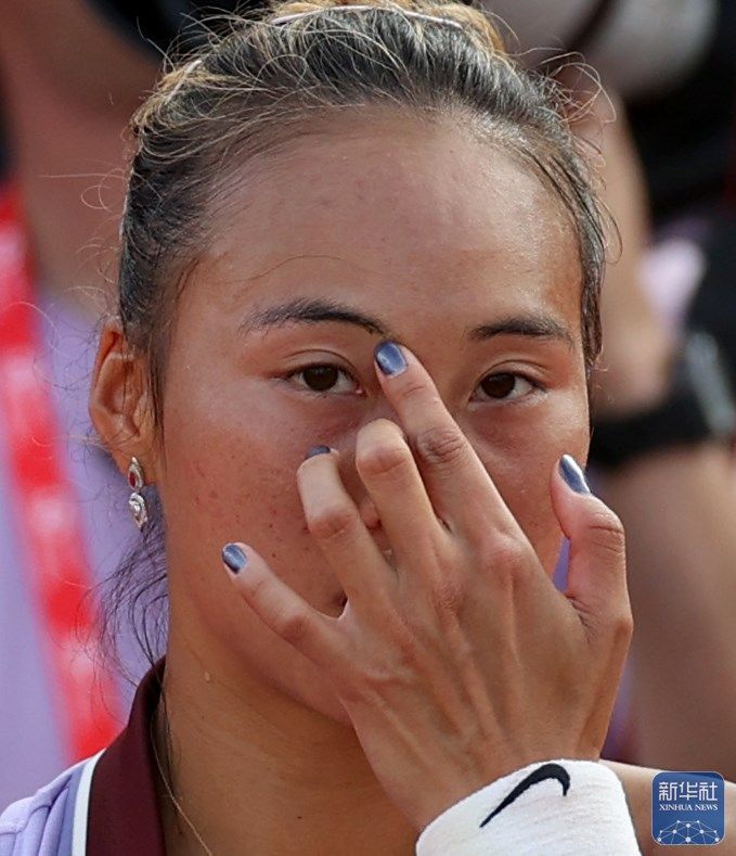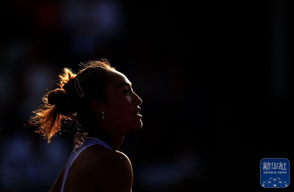 ↑郑钦文在比赛间隙。新华社记者 李颖 摄