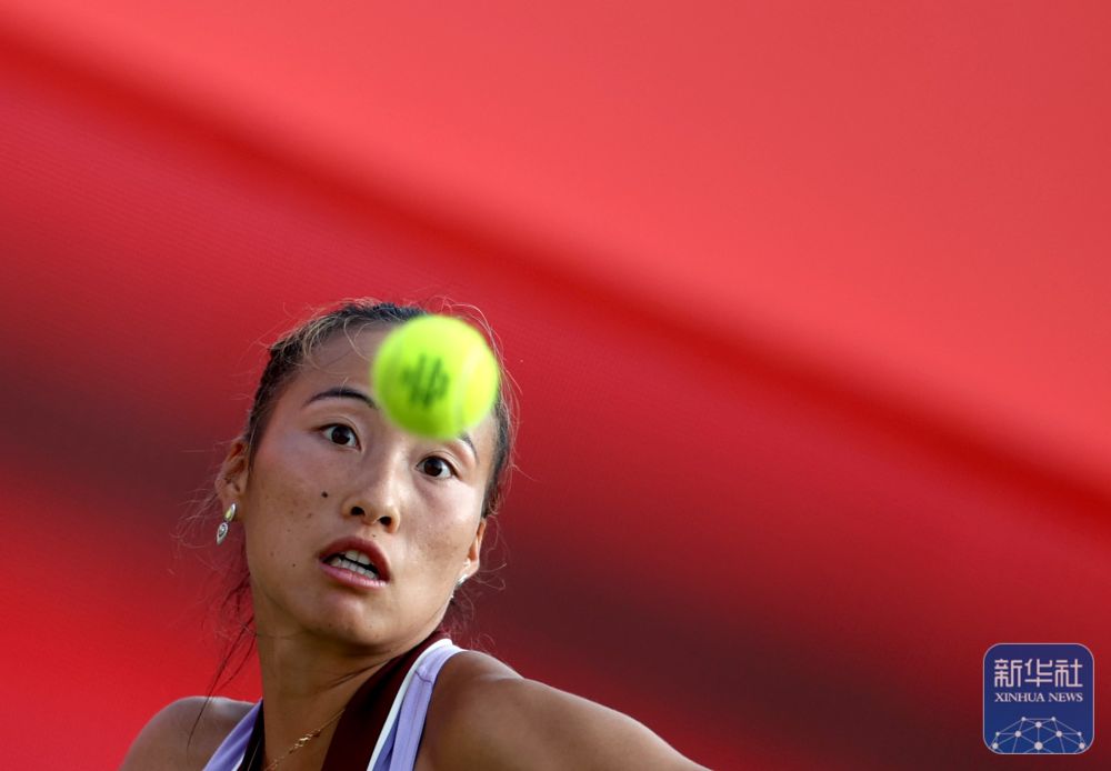 ↑ 郑钦文在比赛中回球。新华社记者 李颖 摄